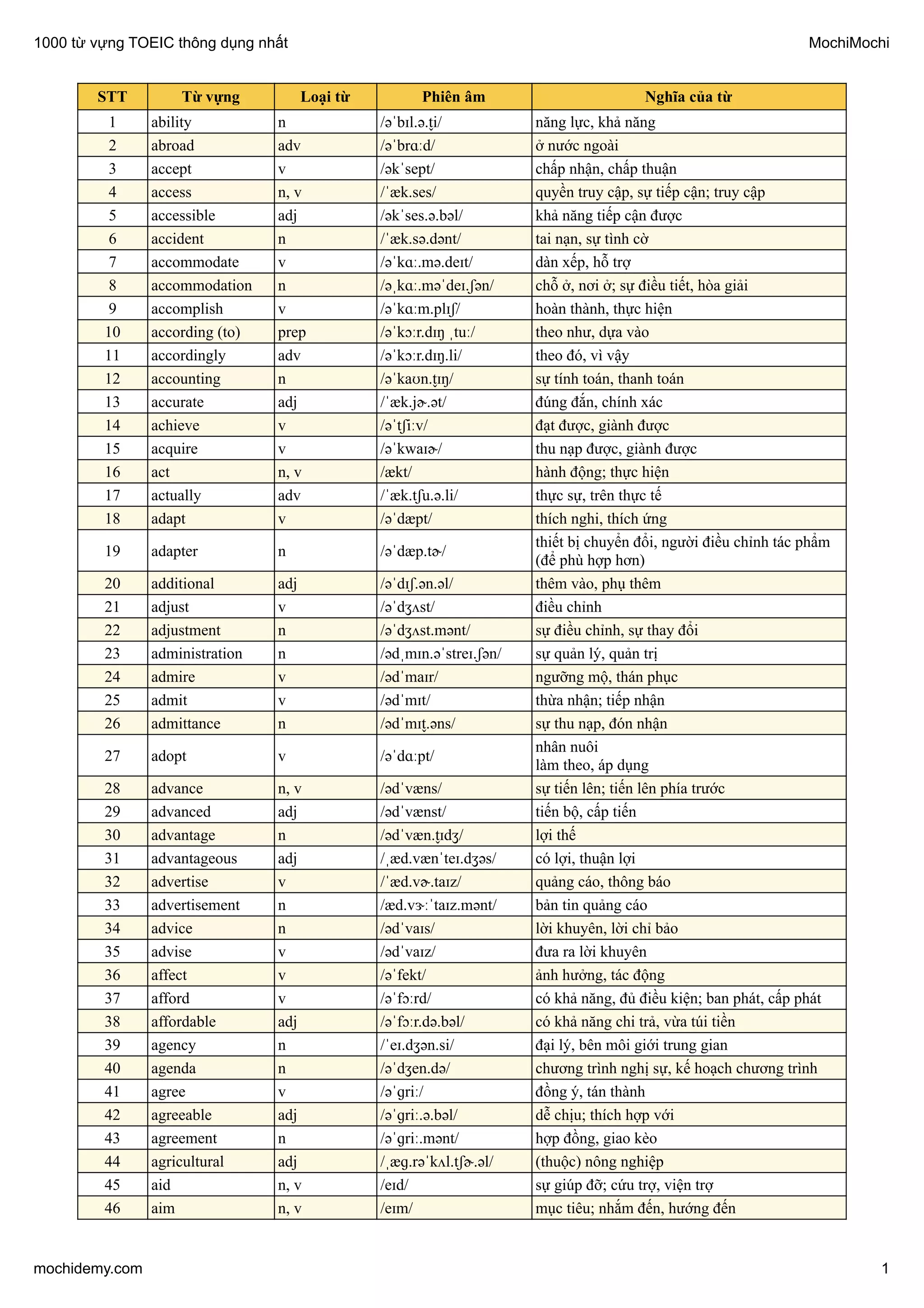 Trong quá trình ôn tập cho kỳ thi TOEIC, việc tích lũy từ vựng đóng vai trò vô cùng quan trọng. Bài viết này tổng hợp hơn 1000 từ vựng TOEIC theo từng chủ đề giúp bạn dễ dàng nắm bắt và ôn luyện hiệu quả. Một khóa học tuyệt vời sẽ mang đến cho bạn 1200 từ vựng, trong đó 99% sẽ xuất hiện trong bài thi.