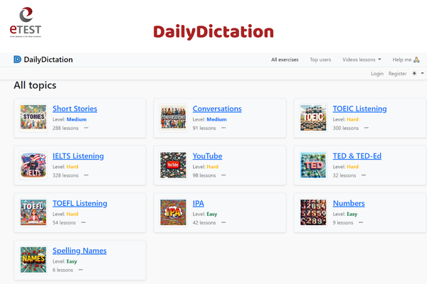 Trong quá trình học tiếng Anh, luyện nghe chép chính tả (dictation) là phương pháp hiệu quả giúp nâng cao kỹ năng nghe, cải thiện phát âm và tăng vốn từ vựng đáng kể. Để quá trình này trở nên dễ dàng và tiện lợi hơn, hiện nay có rất nhiều website và ứng dụng hỗ trợ nghe chép chính tả tiếng Anh với các dạng bài tập phong phú, phù hợp mọi trình độ. Bài viết dưới đây sẽ tổng hợp các web nghe chép chính tả tiếng Anh miễn phí, hiệu quả, giúp bạn lựa chọn công cụ luyện tập phù hợp nhằm nâng cao trình độ tiếng Anh một cách nhanh chóng nhất.